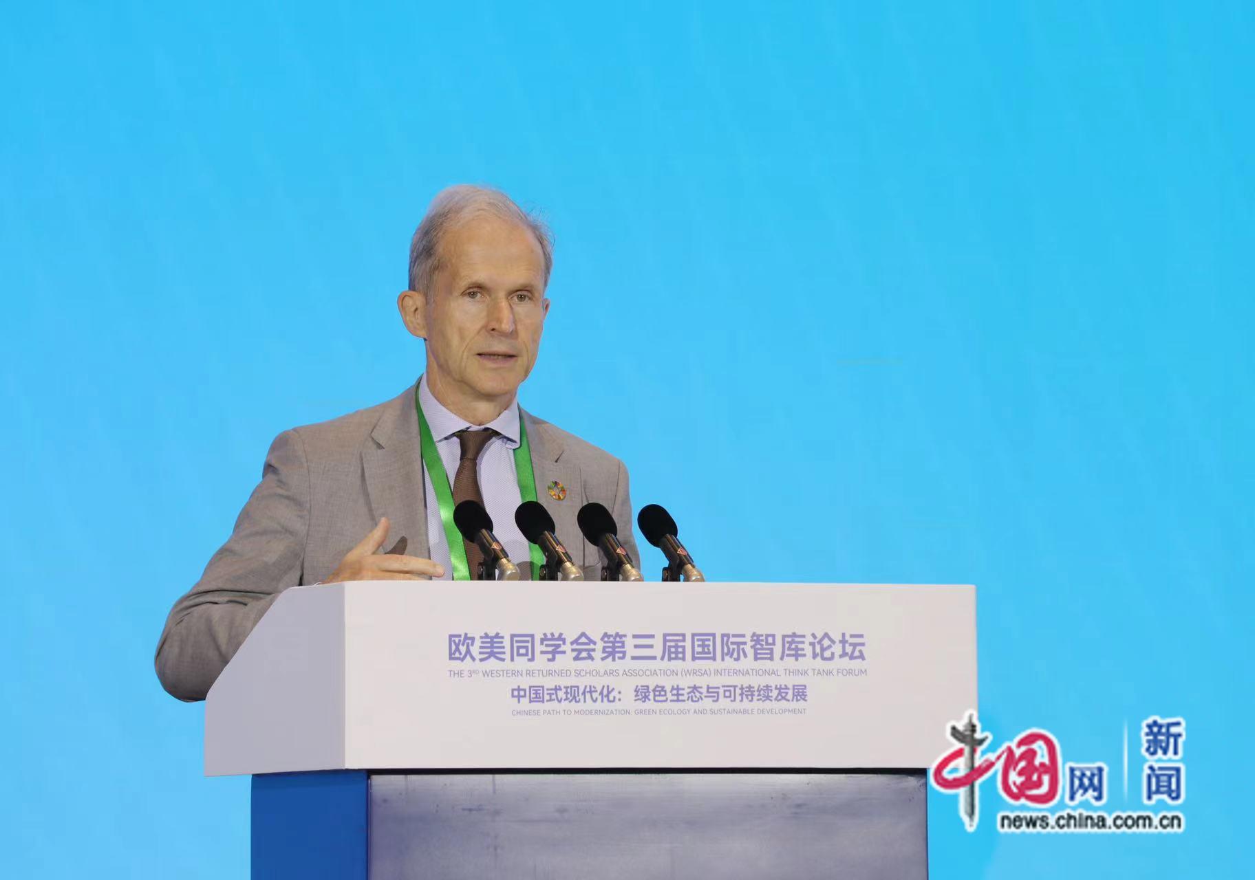 图为“一带一路”绿色发展国际研究院联合主席、欧盟亚洲中心主席埃里克·索尔海姆作论坛主题发言。中国网记者 吴亮 摄