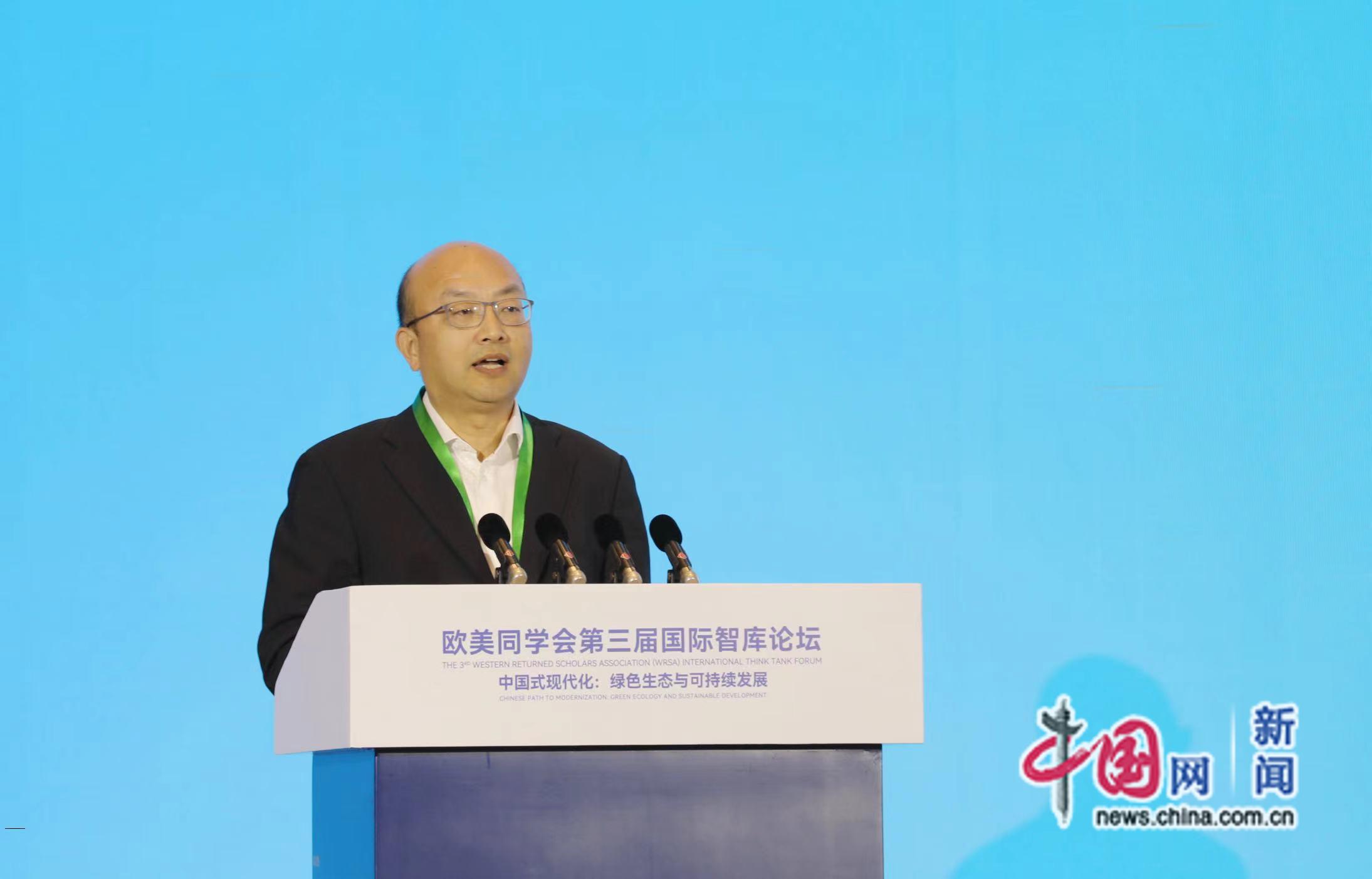 图为全国人大常委会副委员长、欧美同学会会长丁仲礼作主旨演讲。中国网记者 吴亮 摄