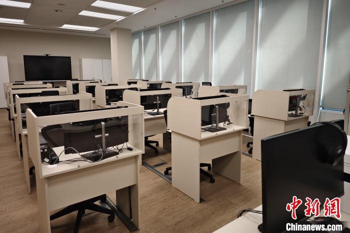 图为北京语言大学哈萨克斯坦分校的视听说教室。(北京语言大学供图)