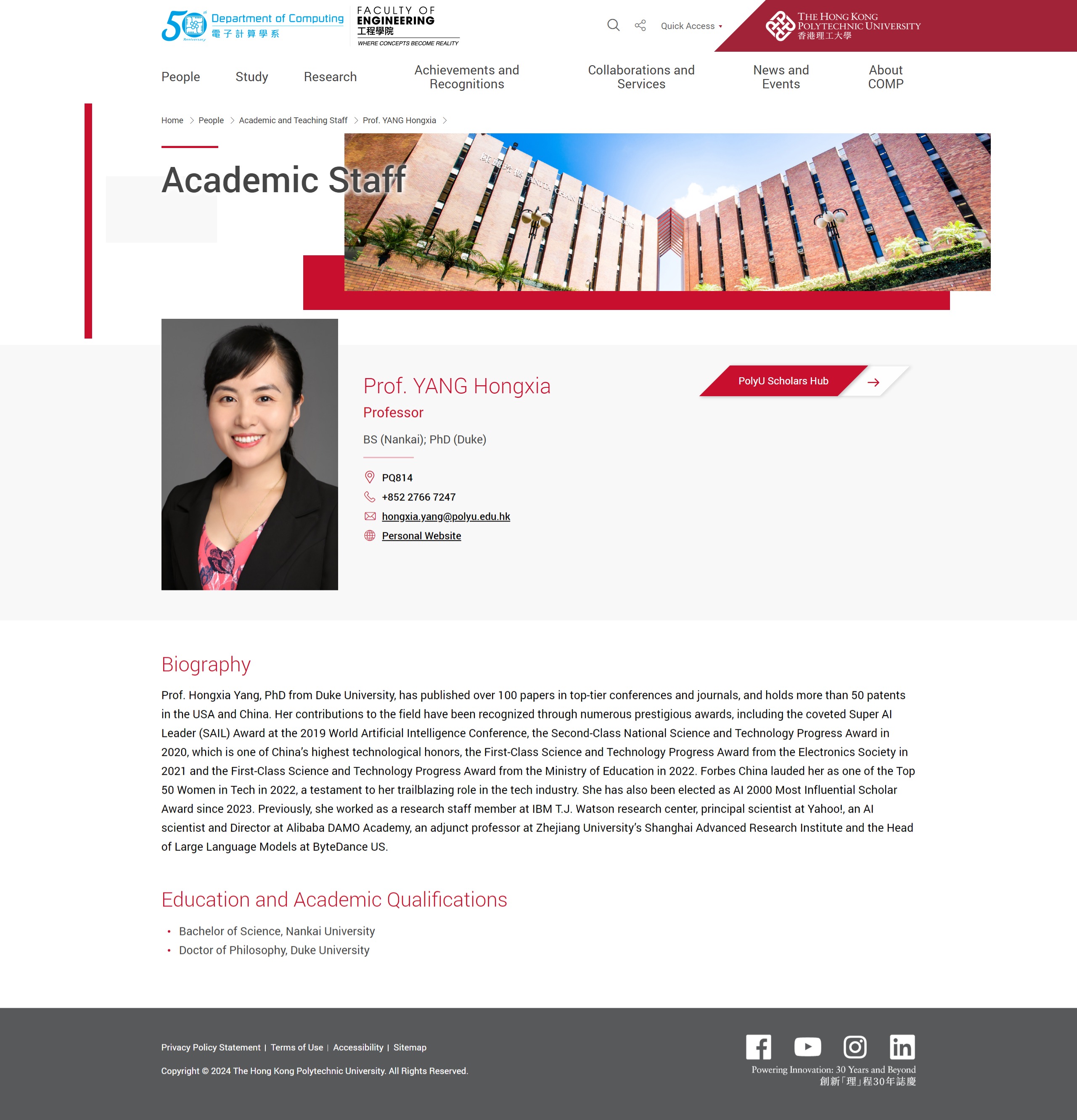 近日,澎湃新闻记者查询发现,香港理工大学官网教授个人信息页面更新显示,知名AI科学家杨红霞已经加盟该校,出任教授。