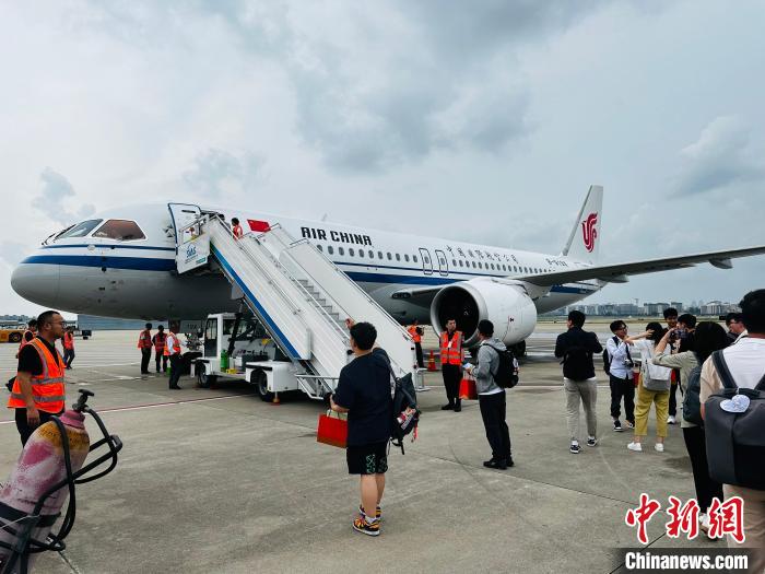 CA1523航班抵达上海虹桥机场。 曹旭帆摄
