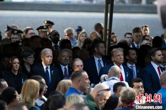当地时间9月11日,“9·11”事件23周年纪念活动在纽约世贸中心遗址广场举行。美国总统拜登、副总统哈里斯、前总统特朗普等出席。 中新社记者 廖攀 摄