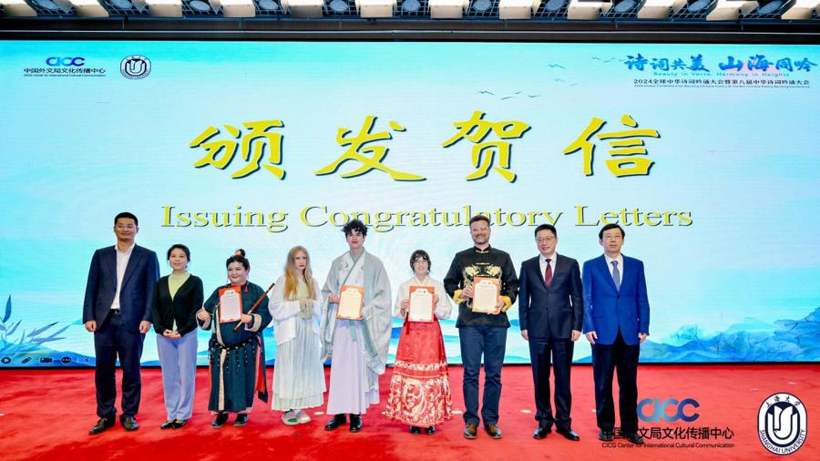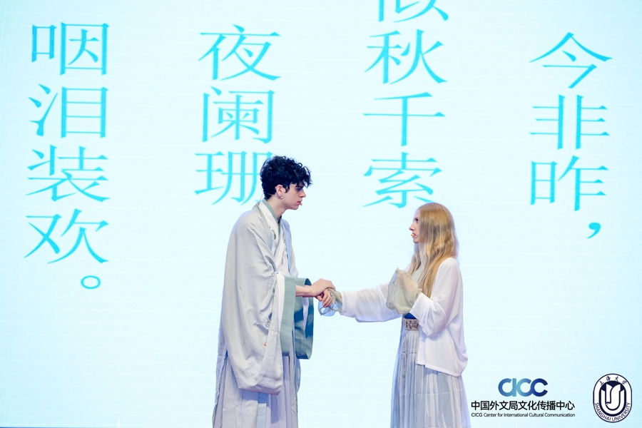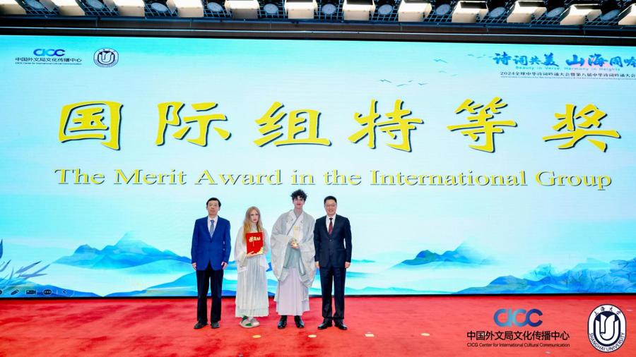 来自哥伦比亚大学、纽约大学的CANTOR KRISTEN LEE和SOTO SEBASTIAN JAMES,17日拿下2024全球中华诗词吟诵大会暨第八届中华诗词吟诵大会国际组唯一的特等奖。两人吟诵大词人与老恋人的爱情诗,让现场观众领略到中华诗词跨越山海、沟通古今的艺术魅力。尽管文化背景不同,但“山盟虽在,锦书难托”的宋词怅惘之情依然引起中外共鸣。