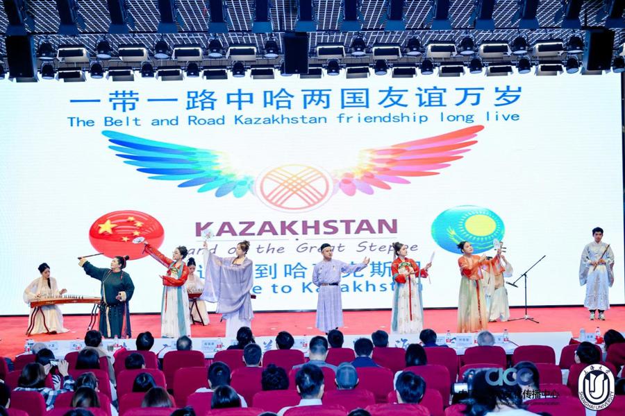 还有一支来自中亚的哈萨克斯坦队伍加入最后篇章“诗韵江山”参赛环节。来自哈萨克斯坦国立欧亚大学的SYLAM DINA、RAIMBAYEVA GOZALYA等6位友人共同吟诵了《大唐江月情》。时空有别,此情无差,盛世的明月穿越古今、遍照中外,并同步呈现出“一带一路 中哈两国 友谊万岁”的舞美背景。