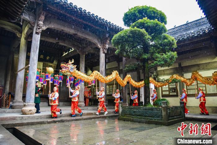 资料图:元宵佳节,篁岭民俗展览馆舞龙迎春。孙润军 摄
