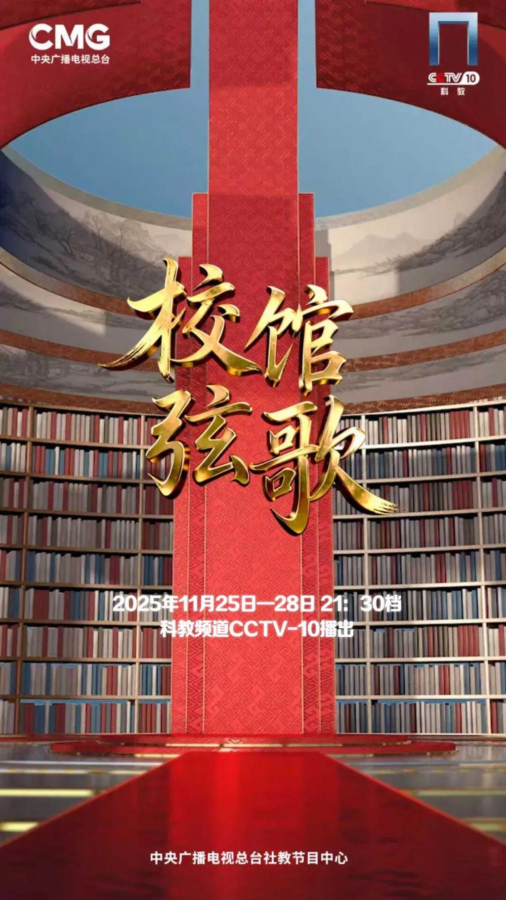 中央广播电视总台社教节目中心系列专题节目《校馆弦歌》,将于2025年11月25日——28日21:30档,科教频道CCTV-10播出,共四集。节目深入八所知名学府,以馆藏文物为钥,开启了一段关于传承红色基因、汲取文化力量与弘扬科学精神的发现之旅,见证新时代大学精神的赓续与焕新。