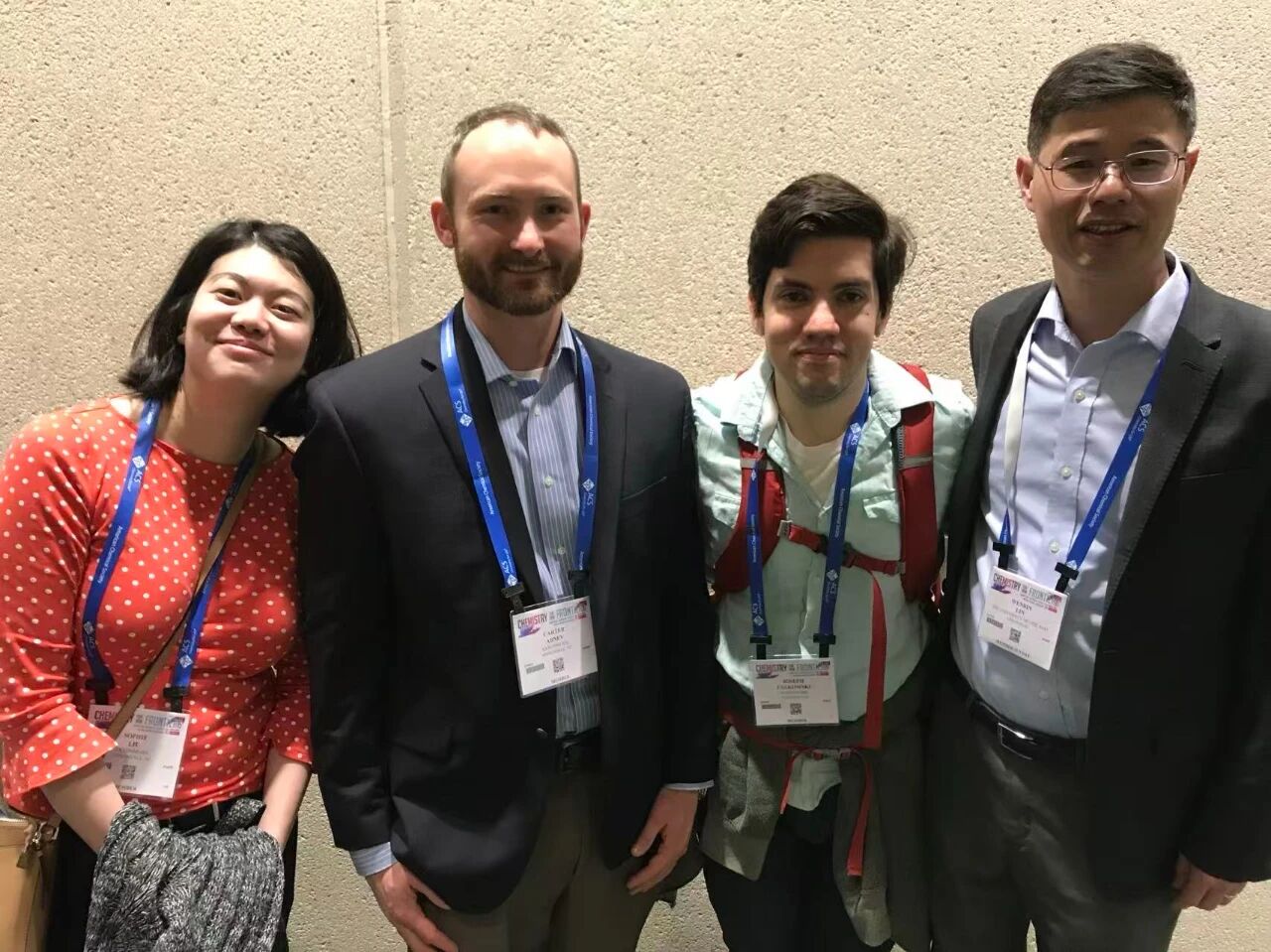 2019年,林文斌(右一)与实验室成员参加美国化学学会