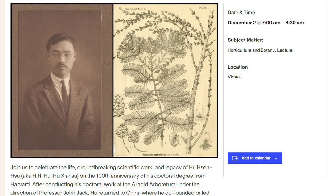 值此百年契机,2025年12月2日,“中国现代植物学奠基人:胡先骕的生平与遗产纪念活动”在线上举行。