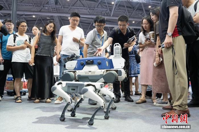 2025杭州国际人形机器人与机器人技术展览会开幕,参观者了解“云深处”机器狗。 吴君毅 摄