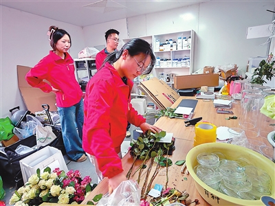 中国农大研究生在进行花卉新品种的采后处理。本报记者 张滢 摄