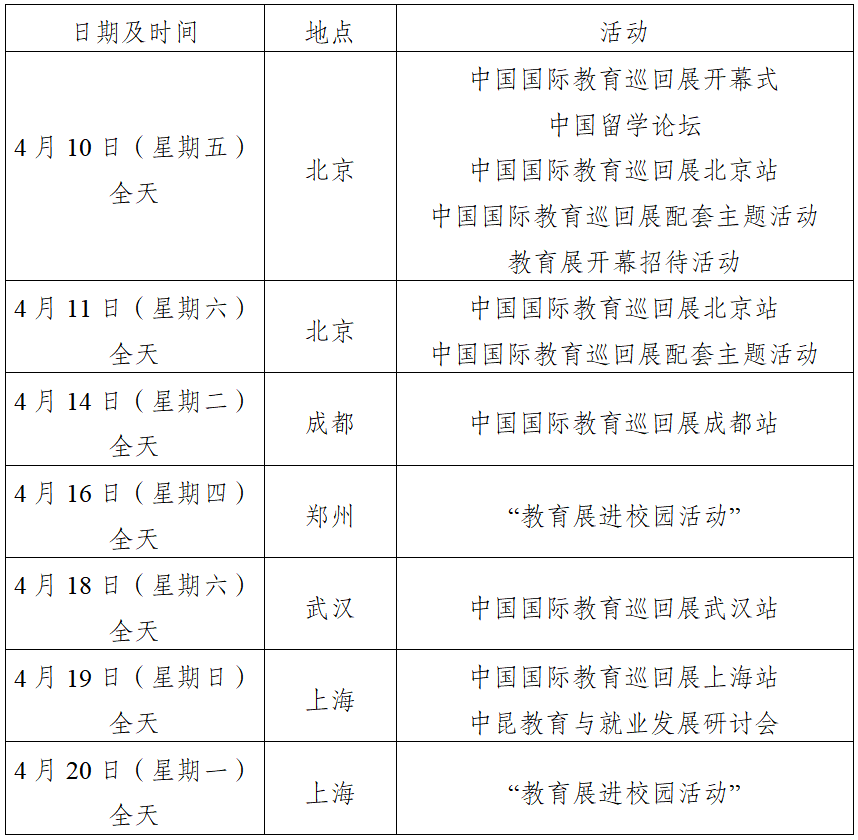 附表:2026年中国留学论坛及中国国际教育巡回展行程安排