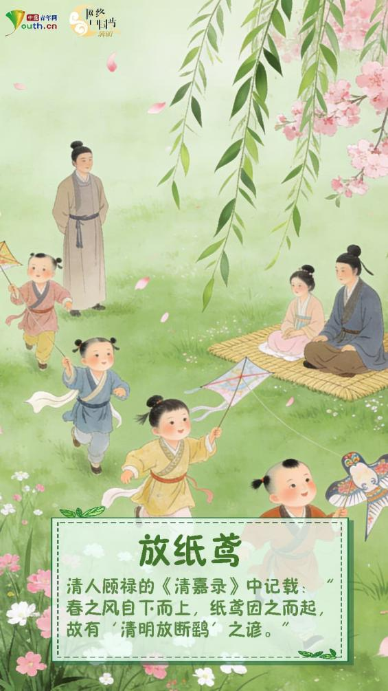 《岁时百问》有云:“万物生长此时,皆清洁而明净,故谓之清明。”清明时节,古人以扫墓祭祖遥寄哀思,又趁春光放纸鸢、荡秋千、蹴鞠嬉闹、踏青寻芳。哀思与暖意相融,肃穆与风雅并存,在春和景明里,藏着独属于中国人的时节意趣。
