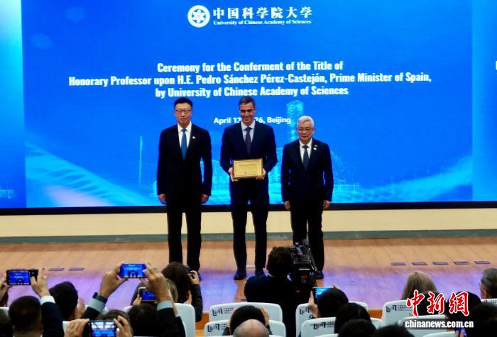 4月13日,西班牙首相佩德罗·桑切斯访问中国科学院,应邀参观中国科学院科技成就展,并接受中国科学院大学(国科大)名誉教授称号。