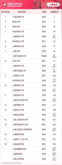此外,在民办高校总榜中,上海有3所高校上榜,分别为上海杉达学院(民办财经类第4名)、上海建桥学院(第27名)和上海立达学院。