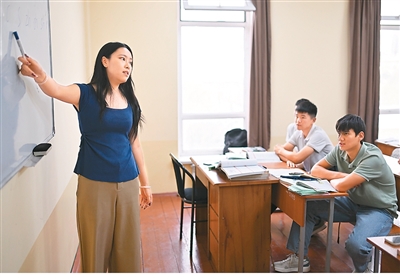 今年9月,一名中方教师在吉尔吉斯斯坦奥什国立大学孔子学院授课。新华社记者 李任滋摄