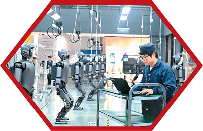 在广西壮族自治区柳州市北部生态新区机器人产业园,工人检查即将下线的工业版人形机器人。黎寒池摄(新华社发)