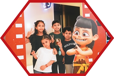 在沙特阿拉伯利雅得,观众在《哪吒之魔童闹海》的宣传展板拍照留念。新华社记者 王海洲摄