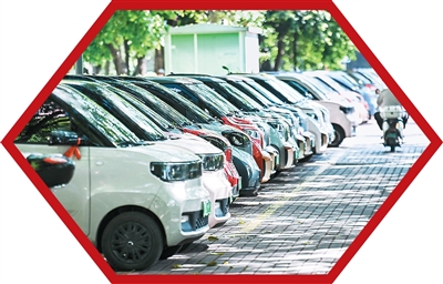 在广西壮族自治区柳州市街头拍摄的一处新能源汽车专用停车区。新华社记者 曹祎铭摄