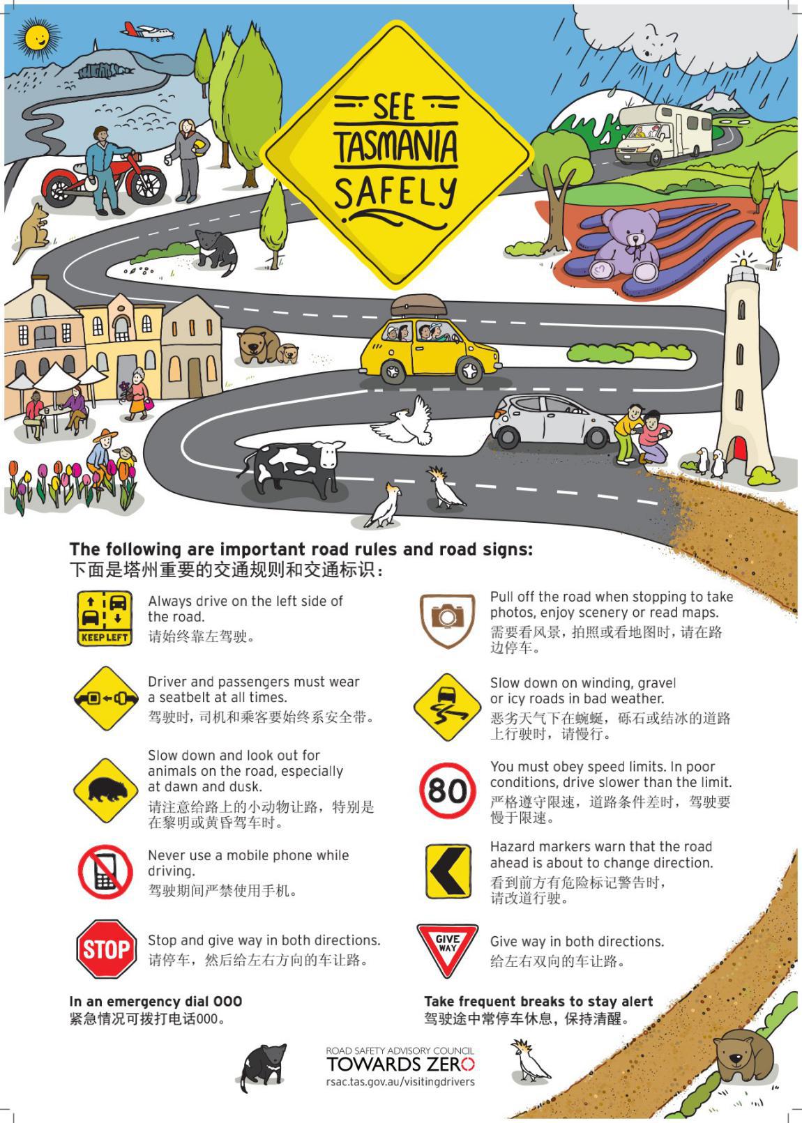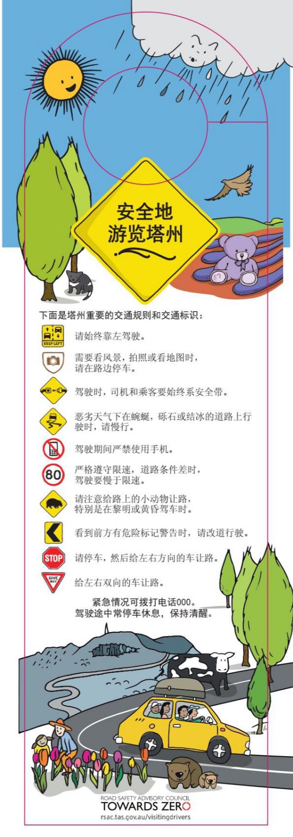 塔斯马尼亚旅游局(Tourism Tasmania)专为中国籍游客制作的旅行安全小贴士: