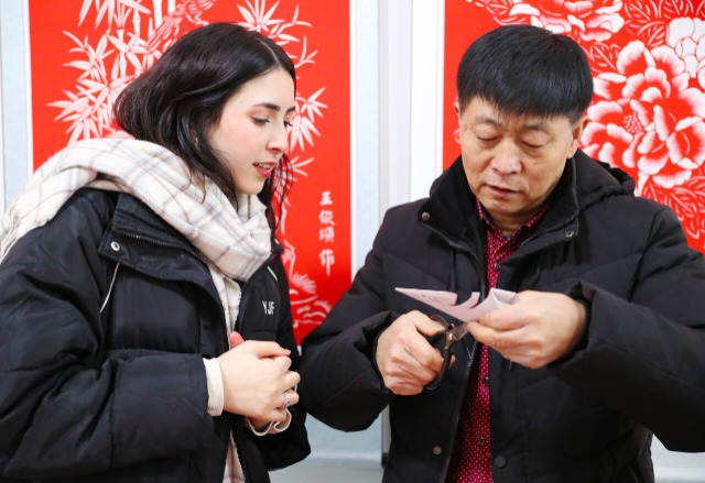 1月27日,山东科技大学来自俄罗斯、巴基斯坦、斯里兰卡、泰国、印度尼西亚等“一带一路”沿线国家的近30名留学生,走进山东省潍坊高密市姜庄镇,体验泥塑、扑灰年画、木版年画、剪纸等非遗民俗文化项目,零距离感受中国传统文化魅力,体验中国“年味”。