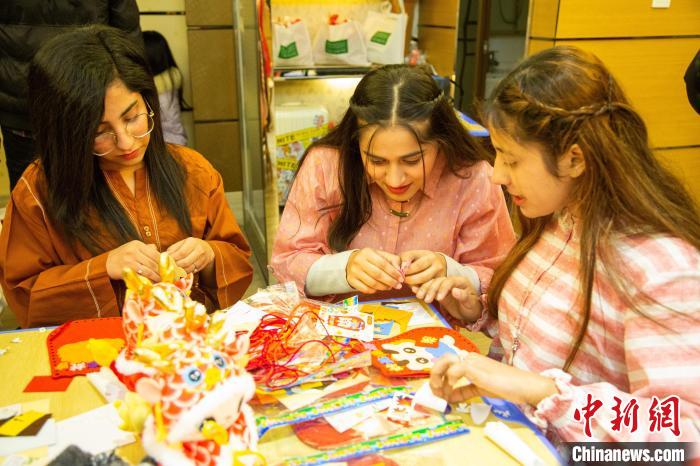 留学生体验剪窗花。张倩龙 摄