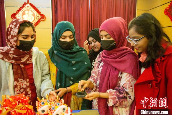 留学生体验做福袋。张倩龙 摄
