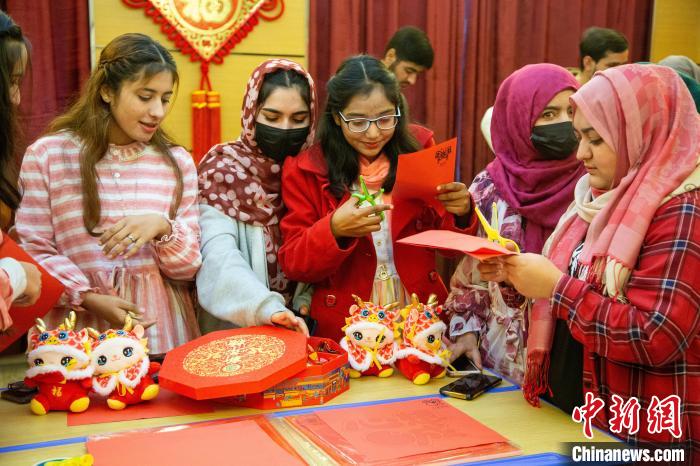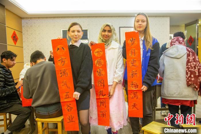 1月31日,春节临近,在湖北文理学院国际教育学院,来自俄罗斯、巴基斯坦、尼日利亚的近40名留学生齐聚一堂,投壶、做福袋、写对联......沉浸式体验中国春节传统习俗,感受中国传统文化魅力。