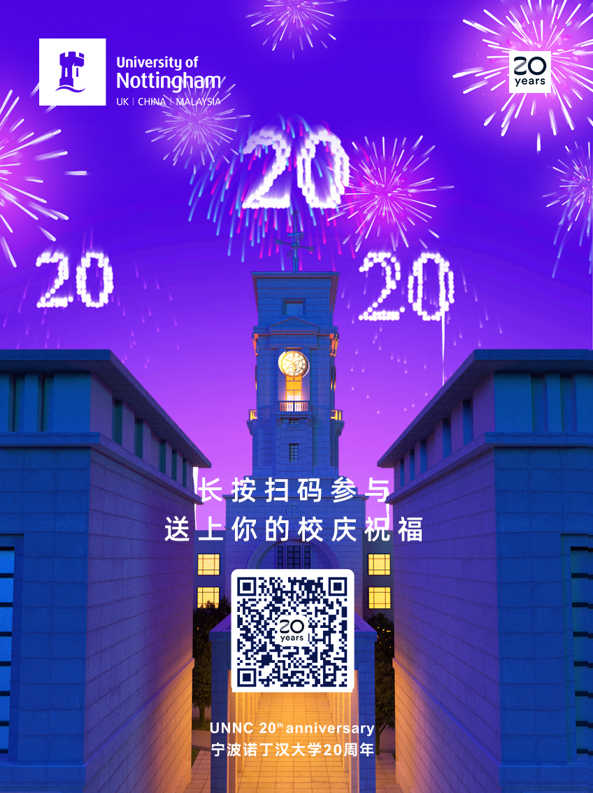 4月13日至15日、4月26日至28日期间,宁波诺丁汉大学二十周年校庆之际,作为宁波地标的三江口14幢楼宇、南部商务区核心区,以及市内36块大屏幕将持续六天以轮播的方式为宁诺点亮,共庆中国高等教育对外开放,向世界打开教育交流之窗。