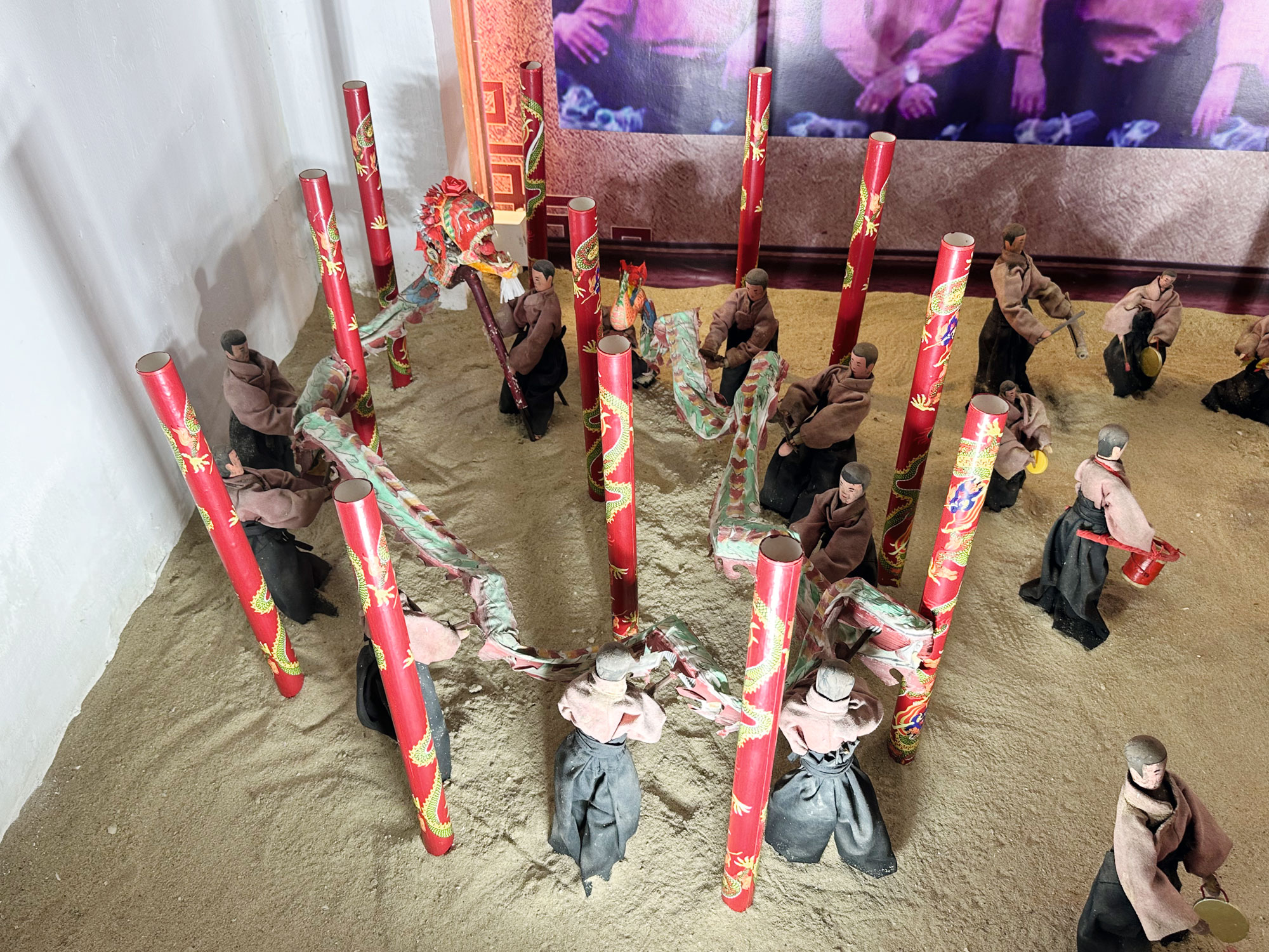 坎门花龙展示馆的花龙表演场景及展品