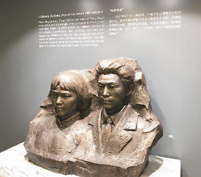 中国旅法勤工俭学蒙达尔纪纪念馆内的“向蔡同盟”雕像。