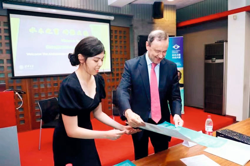 杨嘉怡在清华大学接待出席活动的巴西驻华大使