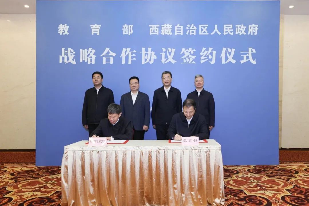 怀进鹏指出,习近平总书记高度重视西藏工作,强调“抓好稳定、发展、生态、强边四件大事”,指出“改变藏区面貌,根本要靠教育”,为西藏教育发展指明了前进方向。自治区党委、政府始终把教育摆在优先发展位置,推动西藏教育取得历史性成就。教育部愿与西藏一道,深入贯彻落实习近平总书记关于西藏工作的重要指示和关于教育的重要论述,特别是在中央政治局第五次集体学习时的重要讲话精神,加强铸牢中华民族共同体意识教育、构建高质量教育体系、推进教育数字化等工作,助力西藏建设教育强区,为建设教育强国作出贡献。