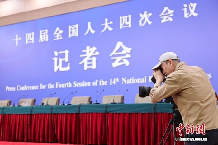 图为工作人员在全国两会新闻中心调试设备。中新社记者 蒋启明 摄