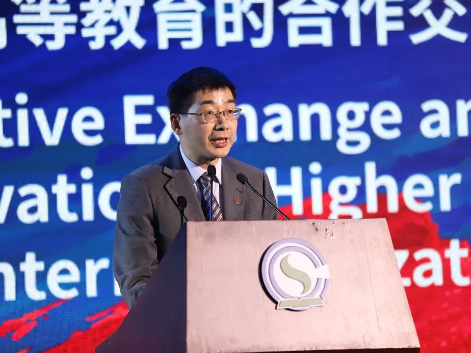 田学军在致辞时指出,当前世界百年未有之大变局加速演进,迫切需要教育发挥更大的作用。建设教育强国离不开高水平对外开放,我们要积极同世界各国开展高质量高水平的教育交流与合作,统筹做好“引进来”和“走出去”两篇大文章,有效利用世界一流教育资源和创新要素,积极参与全球教育治理,大力推进“留学中国”品牌建设,讲好中国故事,传播中国经验,发出中国声音,为构建人类命运共同体作出积极贡献。对此,他提出三点倡议,一是搭建多元交流合作网络,积极与各国开展多层次多类型的教育交流合作,促进全球教育共同发展;二是深化数字教育合作,顺应数字时代教育变革潮流,凝聚各方资源优势,搭建合作共享平台,携手构建数字教育发展的共同体;三是广泛开展交流互鉴,应在加强国际理解教育和跨文化沟通教育的基础上,创新设计更多交流项目,促进师生深入交流。