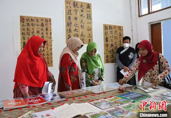 图为中国图书展示。 中新社发 印尼三一一大学孔子学院 供图