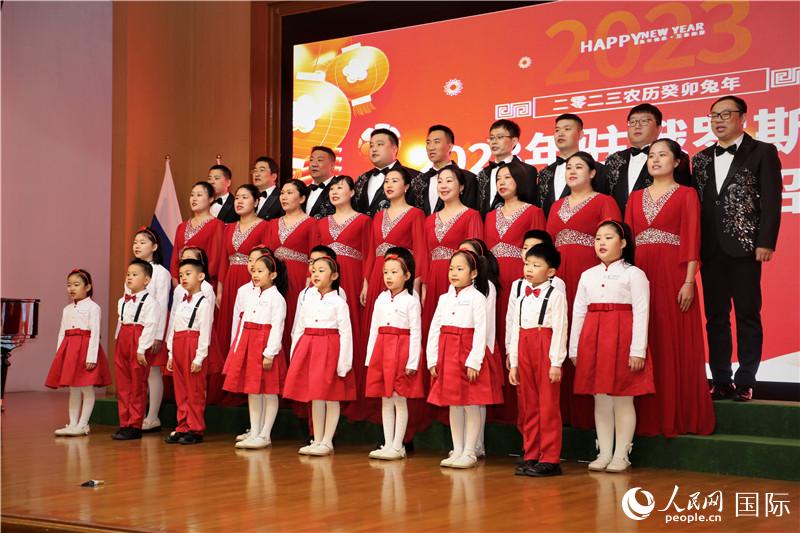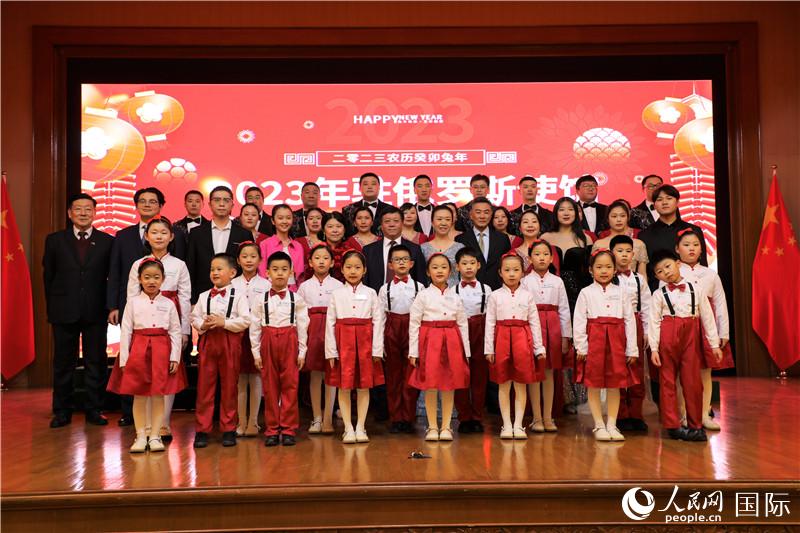 2023年1月9日,中国驻俄罗斯使馆举行“温暖迎春”旅俄中国同胞新春招待会。张汉晖大使及夫人高岩,俄罗斯中国和平统一促进会、莫斯科华人华侨联合会、俄罗斯华侨华人青年联合会等侨界代表,贸促会、中国石油俄罗斯公司、中国石化俄罗斯中亚代表处、国家电网等中资机构代表,人民日报、新华社、央视、中国日报、中新社等驻俄央媒代表,在俄留学生以及使馆外交官等约400人欢聚一堂,共同庆祝农历兔年新春。