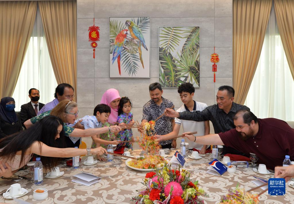 农历新年伊始,文莱华人举行了舞龙舞狮和“开门迎宾”等活动,喜迎兔年新春佳节。文莱王储、首相府高级部长比拉22日携家人来到当地民众家中参加新春庆祝活动,并和一些华人家庭共同举行传统“捞鱼生”仪式。