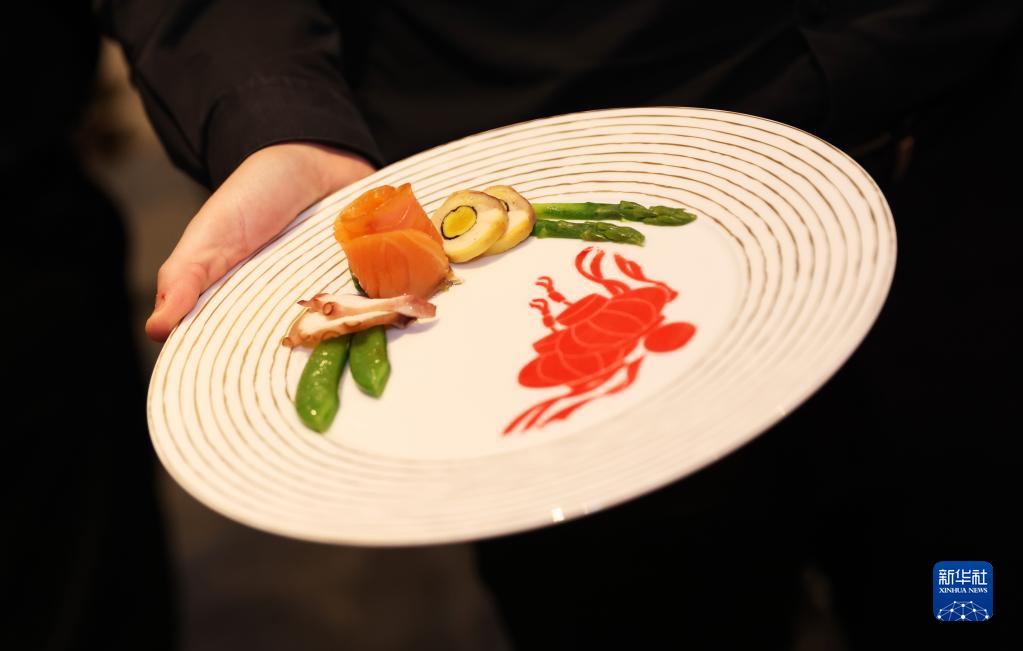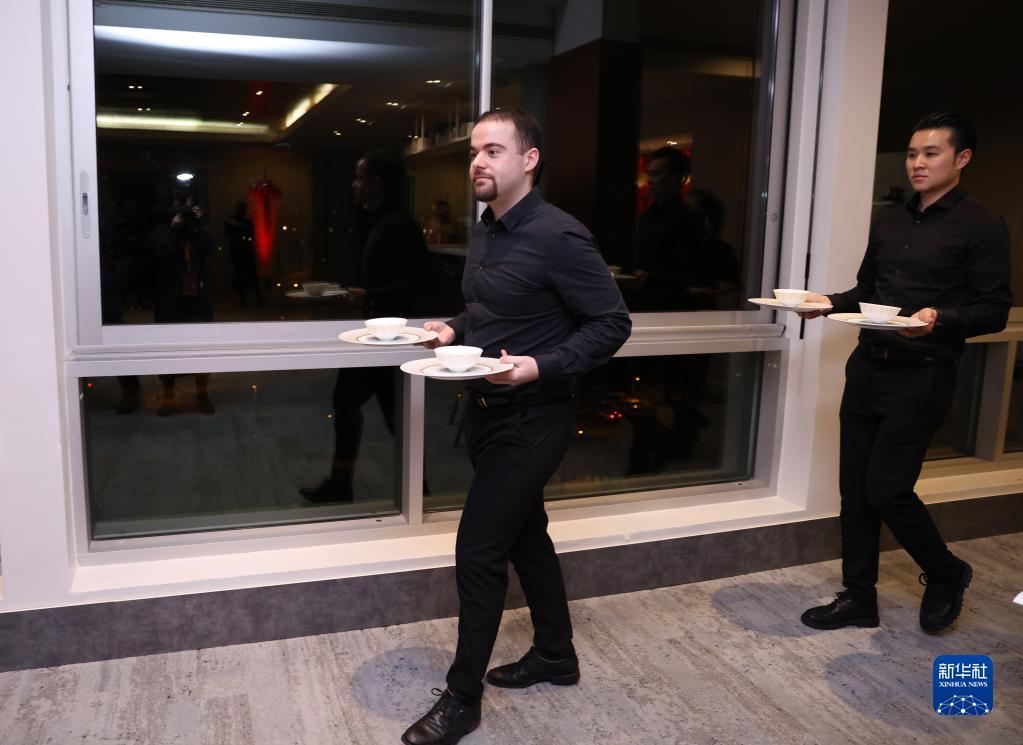 1月23日,中国驻法国大使馆在位于巴黎的联合国教科文组织总部举办“中法美食文化之夜”活动。这是活动中,工作人员端上佳肴。 新华社记者 高静 摄