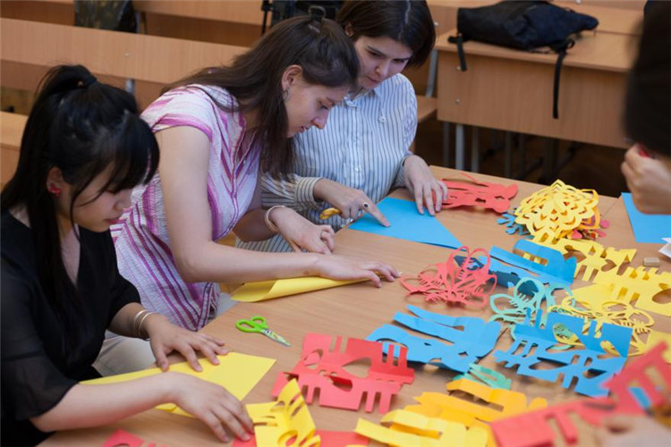 俄罗斯国立人文大学孔子学院学生体验剪纸。俄罗斯国立人文大学孔子学院供图