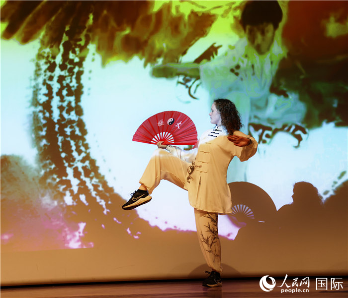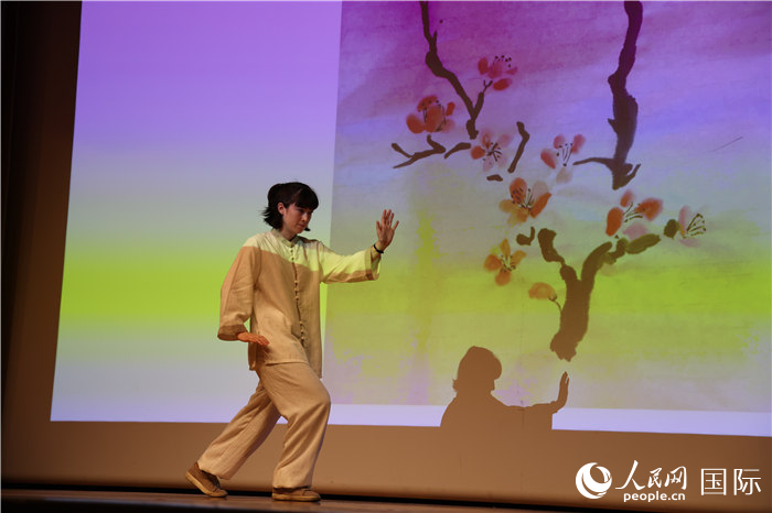 来自兰卡斯特大学的选手郝玛莎表演太极拳,并展示自己画的中国画。人民网记者 邢雪摄