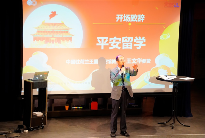 驻荷使馆教育处参赞王文华以“平安留学”为题发表开场致辞