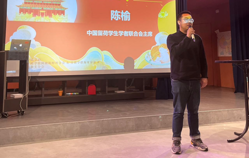 全荷学联主席陈榆简要分享了全荷学联的工作理念,自己参与学联工作的感悟与心得。他表示,全荷学联为同学们在课业学习之余,提供了一个展现自我、互助交流的平台,期待更多新生力量加入全荷学联,共同服务好留荷学生学者。