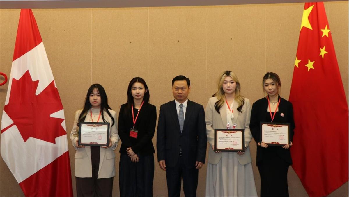 10月18日,中国驻多伦多总领馆举行2025年度多伦多领区“平安留学大赛”和“平安留学主题创作大赛”颁奖活动,代总领事程洪波为部分获奖人员颁奖。(摄影:高阳/中国日报)