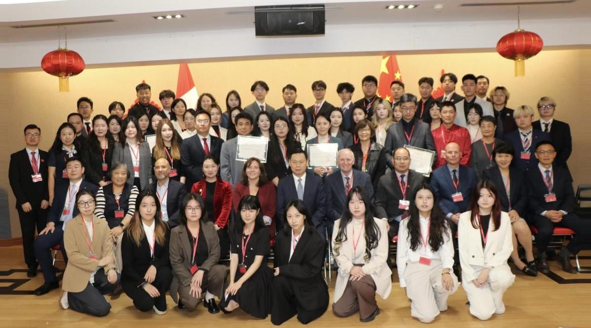 10月18日,中国驻多伦多总领馆举行2025年度多伦多领区“平安留学大赛”和“平安留学主题创作大赛”颁奖活动,与会人员。(摄影:高阳/中国日报)