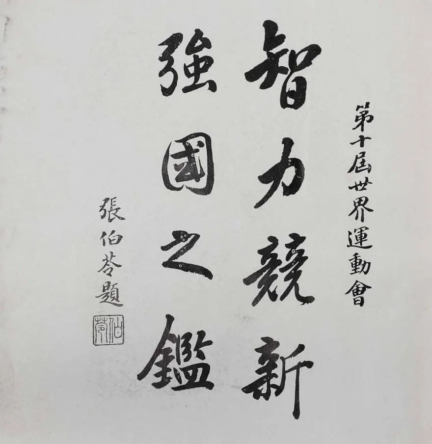 1932年,张伯苓积极联系国际奥委会提出申请,征得同意后,张学良捐赠8000银元,将人称“兔子腿”的短跑运动员刘长春和教练宋君复派往洛杉矶参加第十届奥运会比赛,刘长春成为第一位正式参加奥运会的中国运动员。见证并参与这一历史时刻的张伯苓悬腕挥毫,激动地写下:“智力竞新,强国之鉴”。