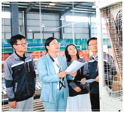 在河北天正能源集团股份有限公司的生产车间,程璐(左二)与工程师在调试设备。受访者供图