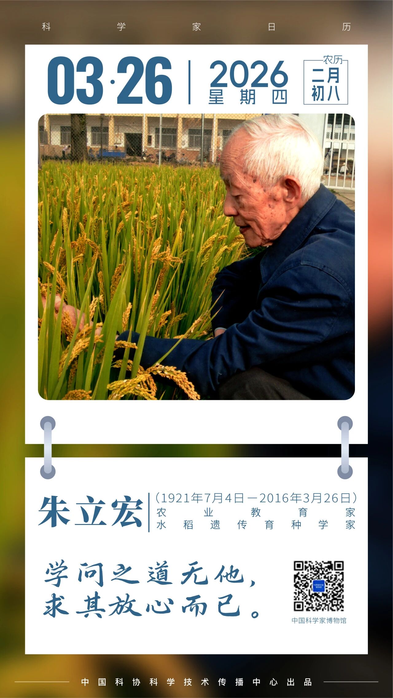 也正是在这里,在金善宝、冯泽芳等农学大家的教导下,朱立宏明确了人生方向。