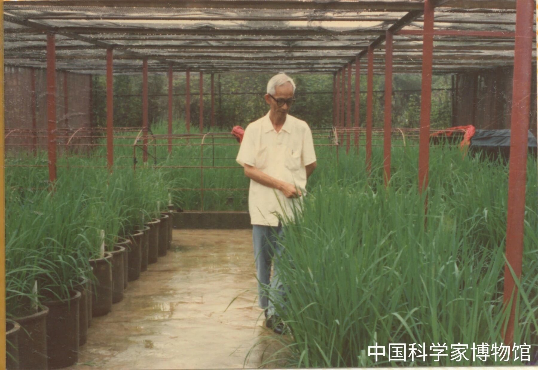 朱立宏在网室观察水稻生长。来源丨中国科学家博物馆