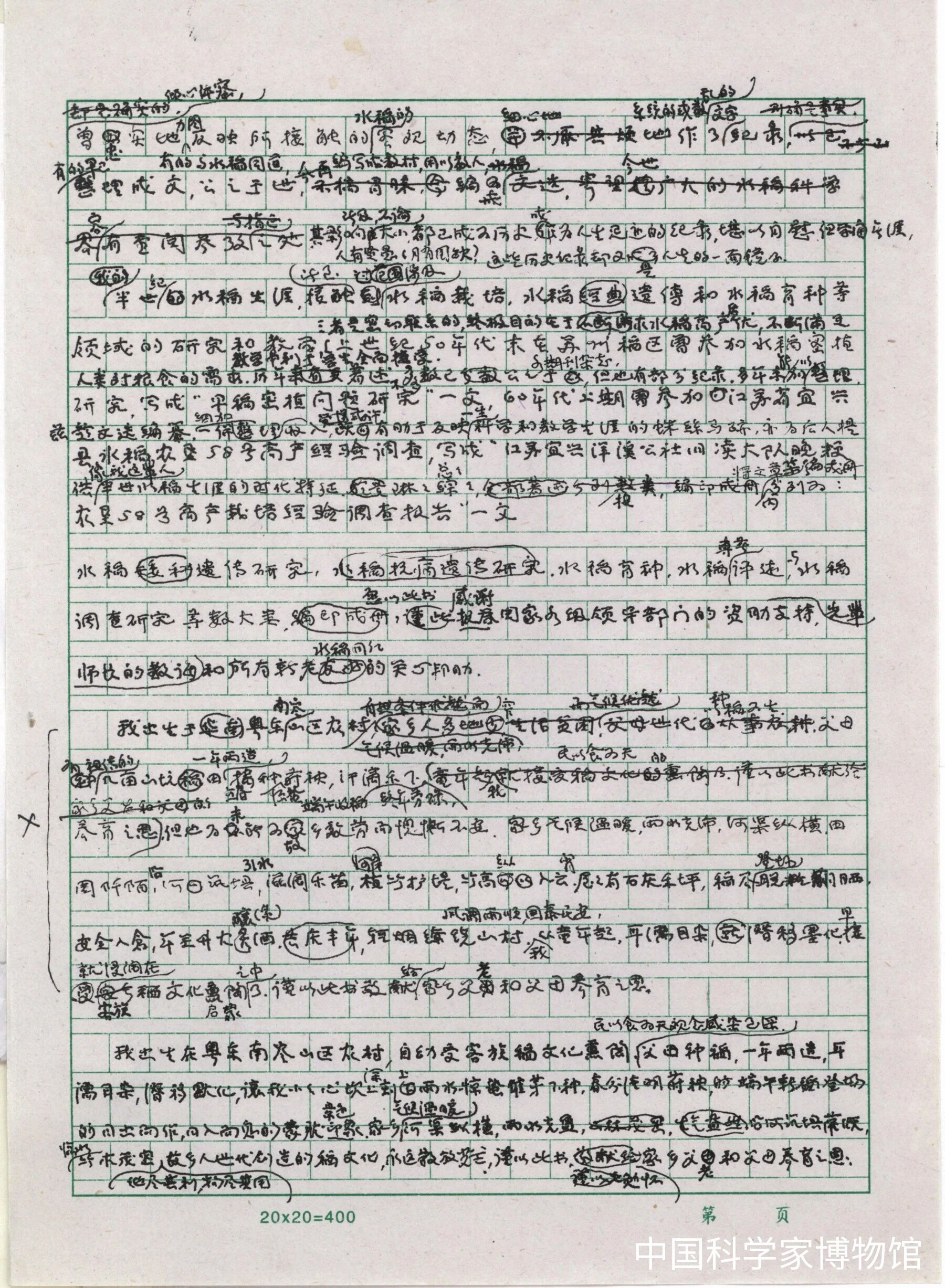 朱立宏的手稿《朱立宏水稻文选》。来源丨中国科学家博物馆