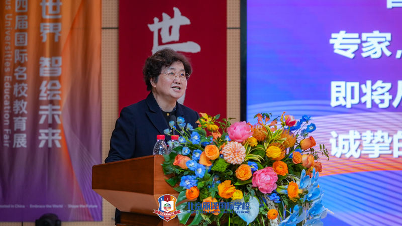 李有毅在北京丽泽国际学校第四届国际名校教育展上致辞。受访者供图